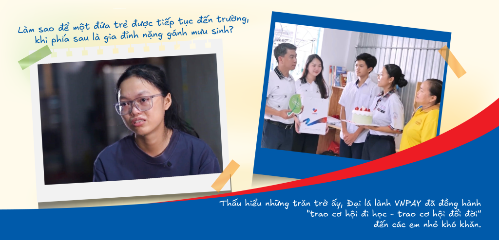 Bốn câu chuyện, bốn mảnh đời khác nhau, nhưng cùng gặp nhau ở một điểm chung, đó là khát vọng học tập chưa bao giờ tắt, dù hoàn cảnh còn nhiều thiếu thốn. Đại lá lành VNPAY tin rằng khi những chiếc lá chưa lành được đùm bọc bằng yêu thương và trách nhiệm cộng đồng, hành trình đến trường của các em sẽ bớt đi những chông chênh, khó nhọc.