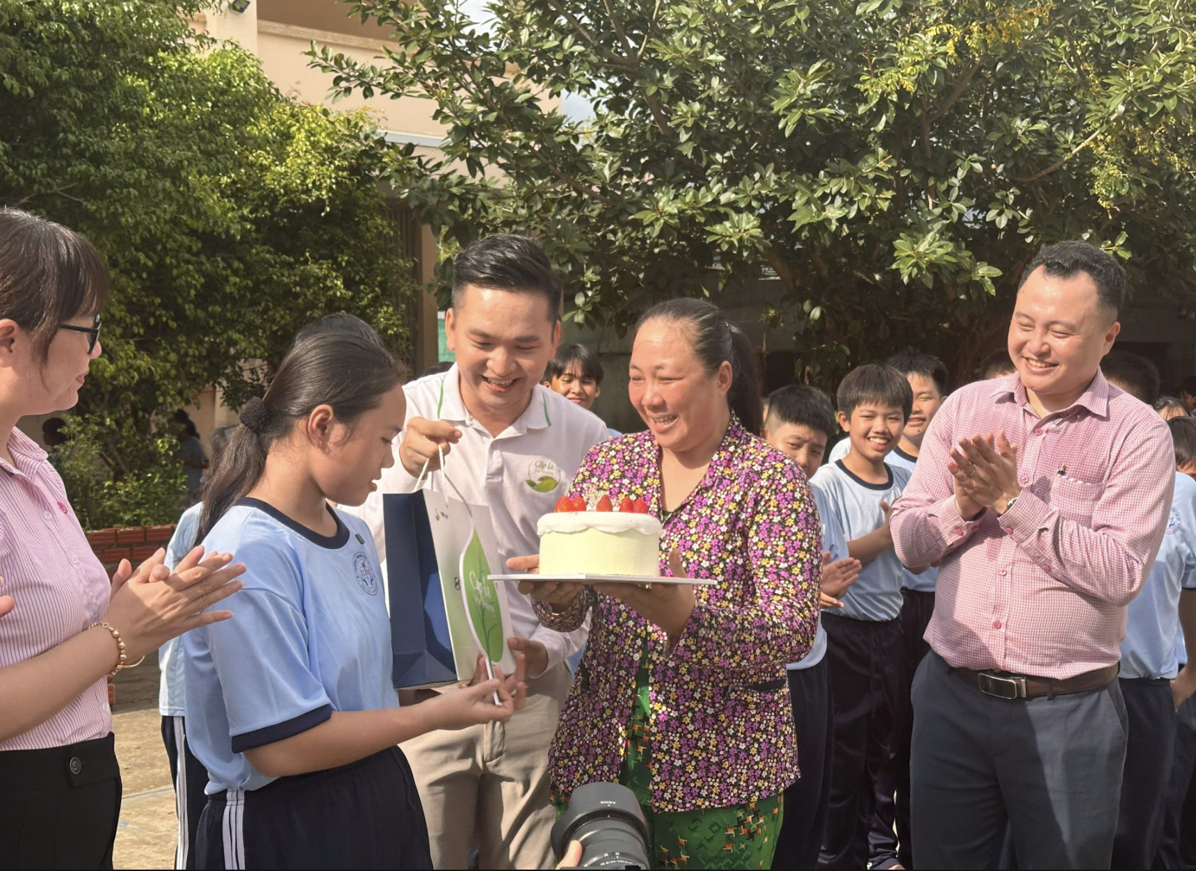 Trong chuyến thăm, Đại lá lành đã ủng hộ sạp chuối của gia đình em như một cách chia sẻ thiết thực nhất. Tại trường học của Tâm, ông Lê Quốc Khái – đại diện doanh nghiệp cũng đã có những giây phút vui vẻ cùng em khi tham gia trò chơi kéo co. Đặc biệt, chương trình còn mang đến một buổi sinh nhật bất ngờ và đầy xúc động cho em nhỏ. Giữa lời hát “Chúc mừng sinh nhật” vang lên, nụ cười rạng rỡ của Tâm là minh chứng cho niềm vui, cho sự đồng hành sẻ chia của những tấm lòng hảo tâm trong hành trình phía trước.
