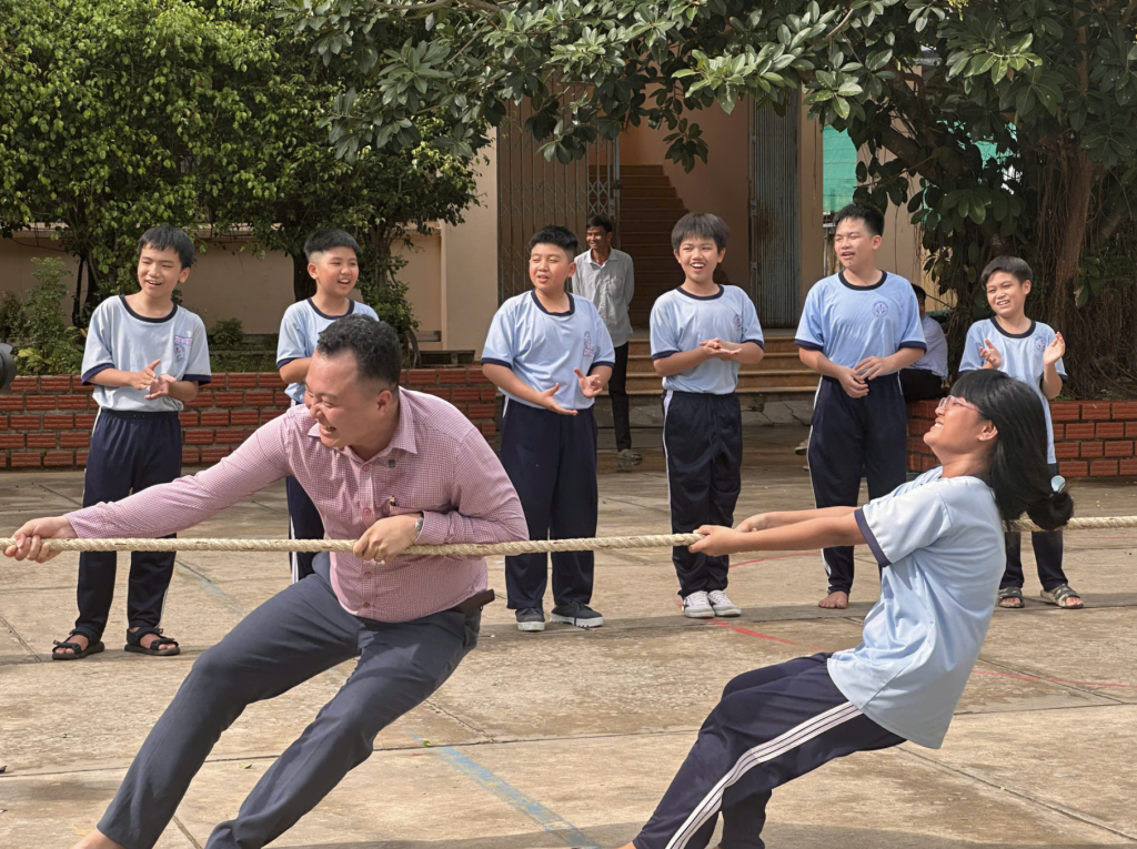 Đại là lành cùng em nhỏ có những giây phút vui vẻ trên sân trường