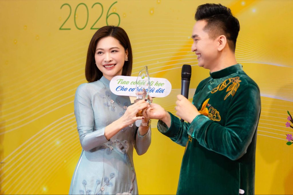 Tại Gala “Thập kỷ gieo mầm xanh”, Đại lá lành Kem đánh răng dược liệu Ngọc Châu đã nhắn gửi những lời chúc chân thành và trao học bổng “Cùng em tỏa sáng nụ cười” với tổng giá trị 50 triệu đồng dành cho hai chị em Thủy Tiên và Minh Trí. Món quà được trao không chỉ mang ý nghĩa hỗ trợ tài chính, mà còn là lời cam kết đồng hành lâu dài để các em yên tâm học tập và giúp gia đình giảm bớt áp lực kinh tế.