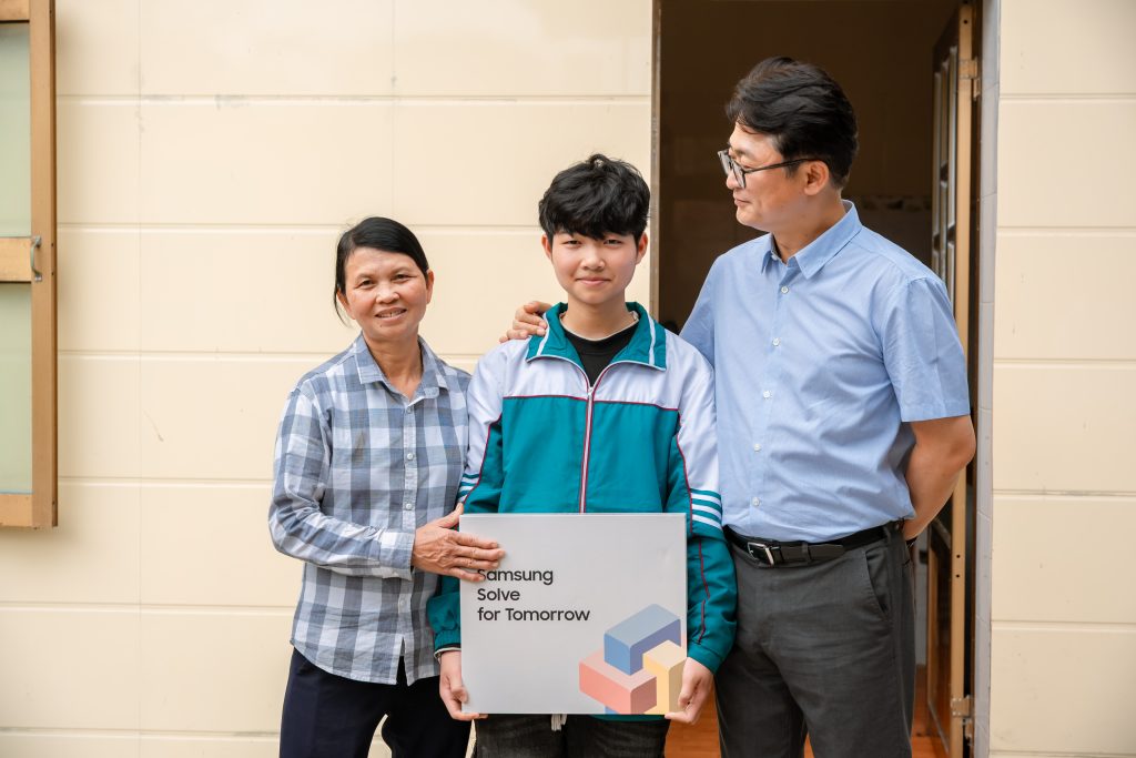 Ông Na Ki Hong – Tổng Giám đốc Samsung Việt Nam chia sẻ: “Tôi mong rằng gia đình sẽ cố gắng giữ vững dũng khí và niềm tin để chăm sóc các con đến độ tuổi trưởng thành. Chúng tôi sẽ luôn đồng hành, hỗ trợ các em học sinh khó khăn thông qua Cặp lá yêu thương cũng như những chương trình ý nghĩa khác.”