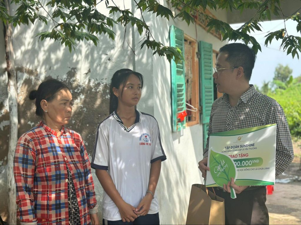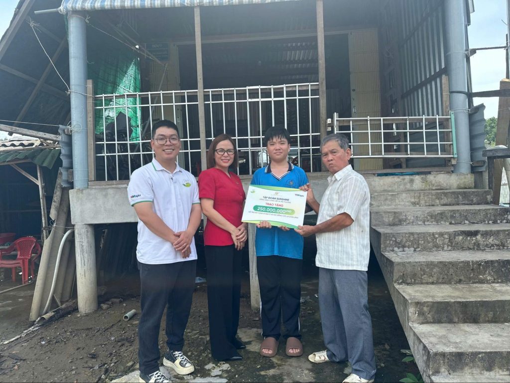 Với em Huỳnh Tuấn Kiệt, Sunshine Group trao tặng suất học bổng và khoản hỗ trợ xây sửa nhà trị giá 250 triệu đồng, giúp gia đình có điều kiện vững vàng hơn để Kiệt theo đuổi ước mơ trở thành giáo viên.