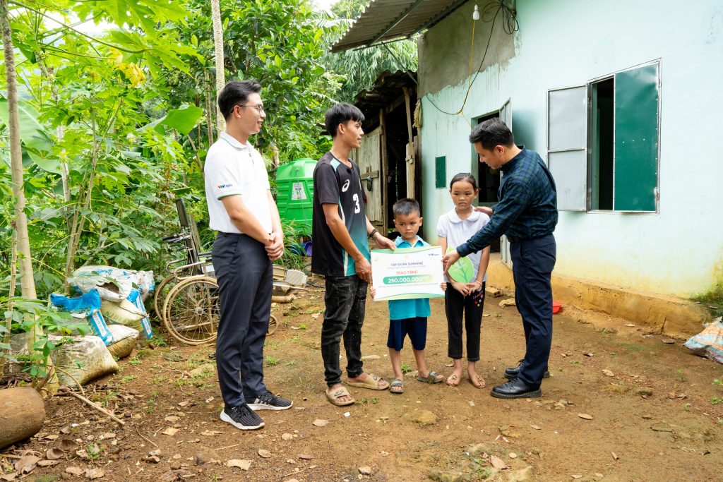Bên cạnh đó, gia đình bốn bà cháu em Bùi Hải Đồng cũng nhận được học bổng và kinh phí hỗ trợ xây dựng lại căn bếp, khu vệ sinh mới với tổng giá trị 250 triệu đồng. “Chúc bà và các cháu sẽ vượt qua khó khăn để có một tương lai tươi sáng hơn,” ông Tuân gửi lời động viên chân thành.