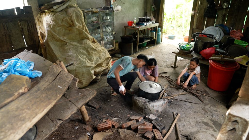 Anh em Hải cùng nhau nấu ăn trong căn bếp cũ